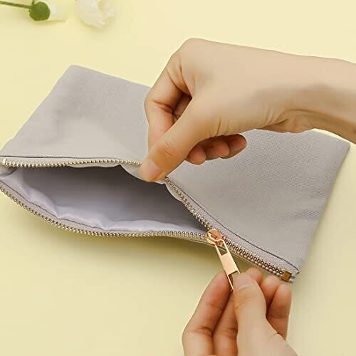 Personalized makeup bag crafted from eco-friendly canvas to hold cosmetics, travel essentials, or small items. Customize with your name, color, and font for a unique gift. Compact 8.8 x 6 inches, versatile for travel, handbags, or as a mini coin purse.
