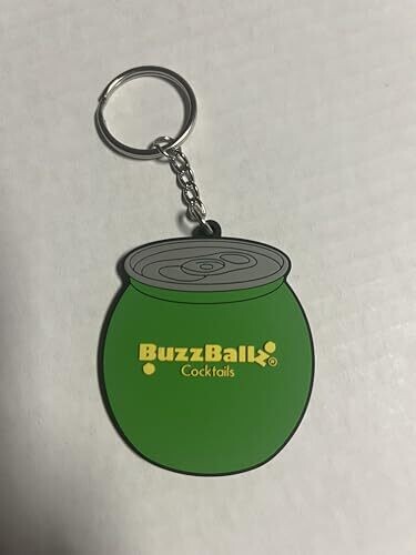 • Designed to dangle from your keys or bag, this compact keychain showcases vibrant green and yellow Buzz Ball Z Cocktails branding, turning heads wherever you go.