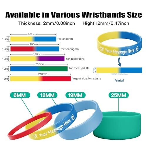 Premium promotional silicone wristbands you can customize with text, clipart, or logos. Choose color, quantity, size, font, and ink for double-sided printing. Durable, non-toxic, and comfortable for campaigns, gifts, fundraisers, awareness, and events.