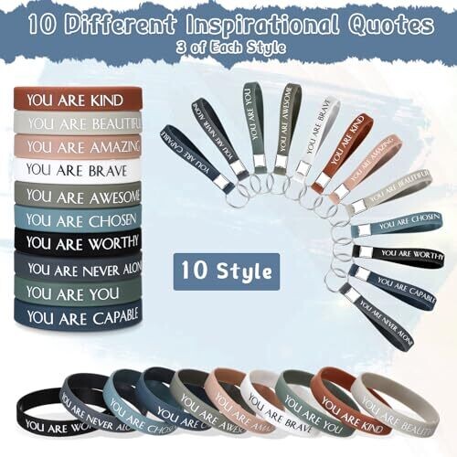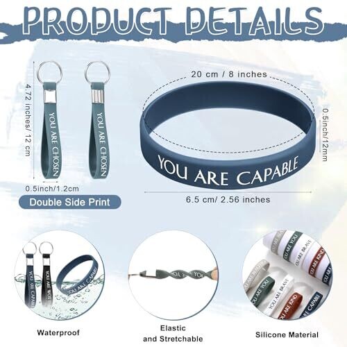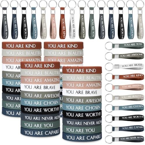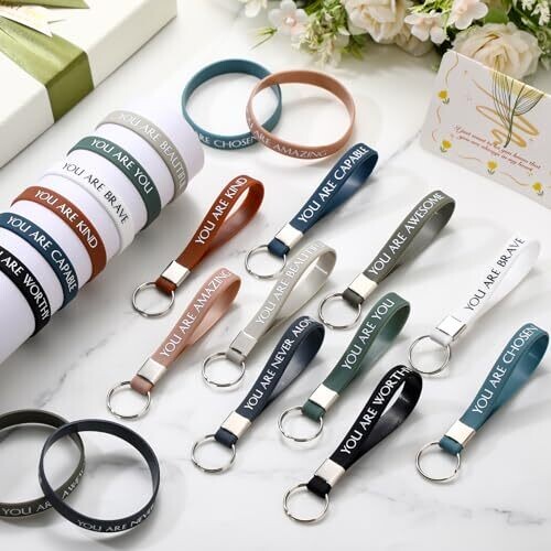 - Motivational wristbands and inspirational keychains set designed to empower and uplift users in daily life, work, and study environments.