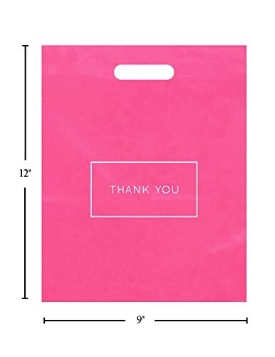 Purple Q Crafts Pink Die Cut Plastic Shopping Bags with Thank You Logo 9" x 12" Boutique Bags with Handles 50 Pack for Merchandise, Gifts, Trade Shows and More