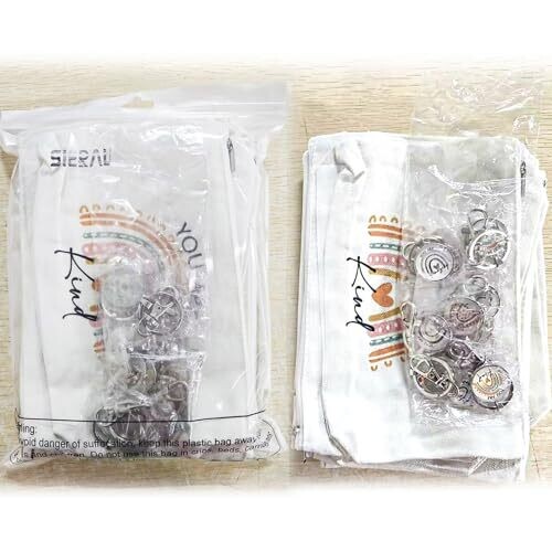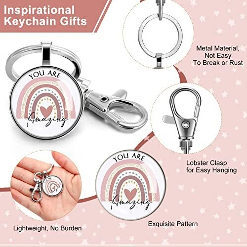 • Includes 20 pieces: 10 canvas makeup bags and 10 keychains in rainbow patterns with encouraging words.
