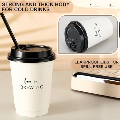 Jingmore 50-pack 12 oz Love Is Brewing disposable wedding cups with lids provide a stylish, practical option for weddings, bridal showers, and engagements. Perfect for promotional products and personalised bulk gifts at corporate events, trade shows, and celebrations, with easy cleanup.