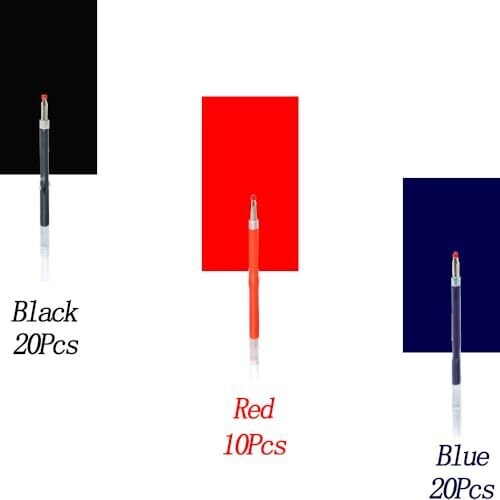50 bead pens plus ink refills—20 black ink, 20 blue ink, and 10 red ink.