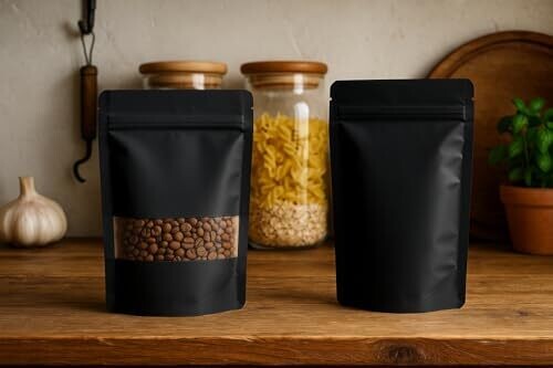 • Ozchillon 100/50 Pcs Resealable Bags Stand Up Black Kraft Paper Bags with Matte Window and Zip Lock — a premium packaging solution that blends sustainability with stylish presentation.