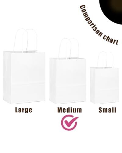 Elevate gifting with Qiqee white paper bags featuring sturdy handles for a polished look. Bulk pack of 50 is ideal for weddings, events, trade shows, and corporate gifts. Eco-conscious, easy to customize, and perfect for pastries, candles, and keepsakes.