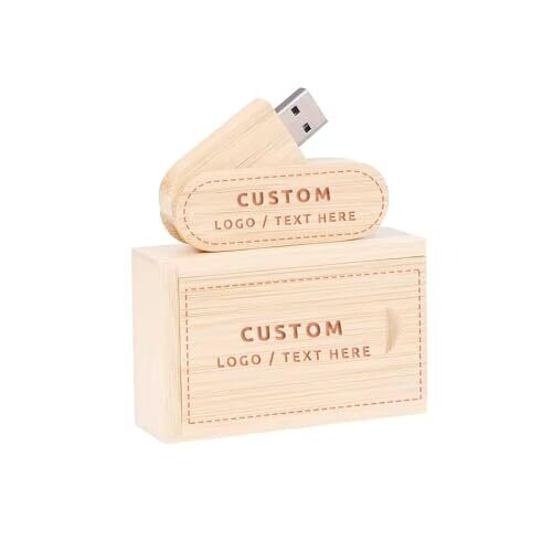 Premium, sustainable wood USB flash drive with a rotating mechanism to showcase your logo from every angle. Made from bamboo, available with a custom-engraved wooden box, up to 50,128 MB, ideal for weddings, corporate gifts, and events.