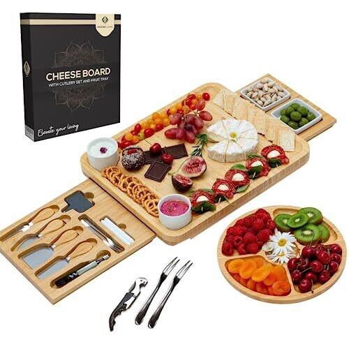 - Unique cheese board with knife set presented in an elegant gift box, ready to delight anyone this season.