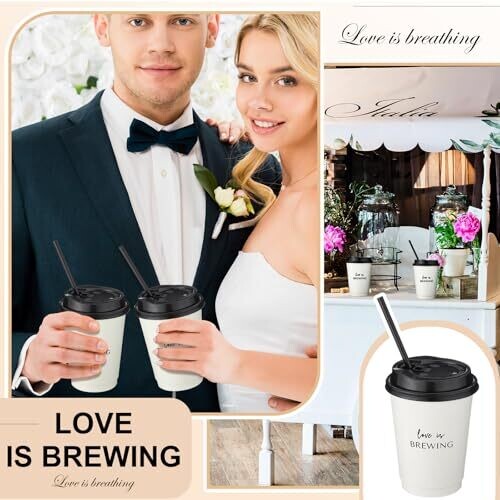- Jingmore 50 Pcs Disposable Wedding Cups Bulk 12 oz Love Is Brewing Bridal Shower Wedding Reception Drinking Cups with Lids Custom Wedding Cups for Engagement Bachelorette Party Supplies - a practical yet stylish choice for your celebration.