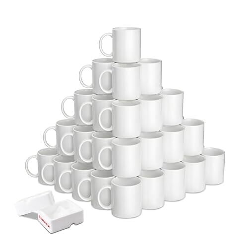 • Sumex Set of 36 11oz Sublimation Mugs - White Ceramic Coffee Mugs for tea, milk, latte, hot cocoa - the perfect canvas for vibrant, personalized gifts and promotions.